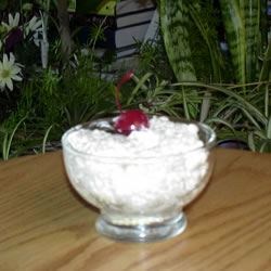 Acini de pepe pasta tossed with a cooked sweet pineapple sauce, cherries, mandarin oranges, and pineapple and chilled.